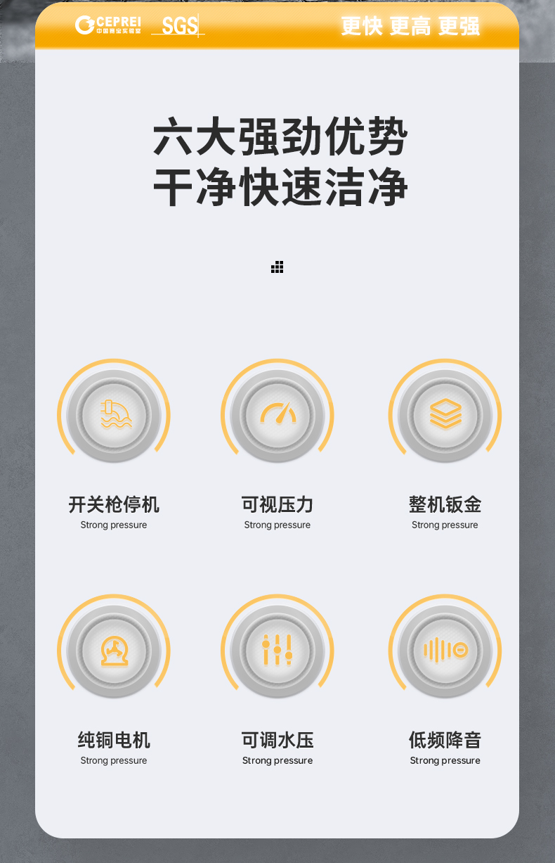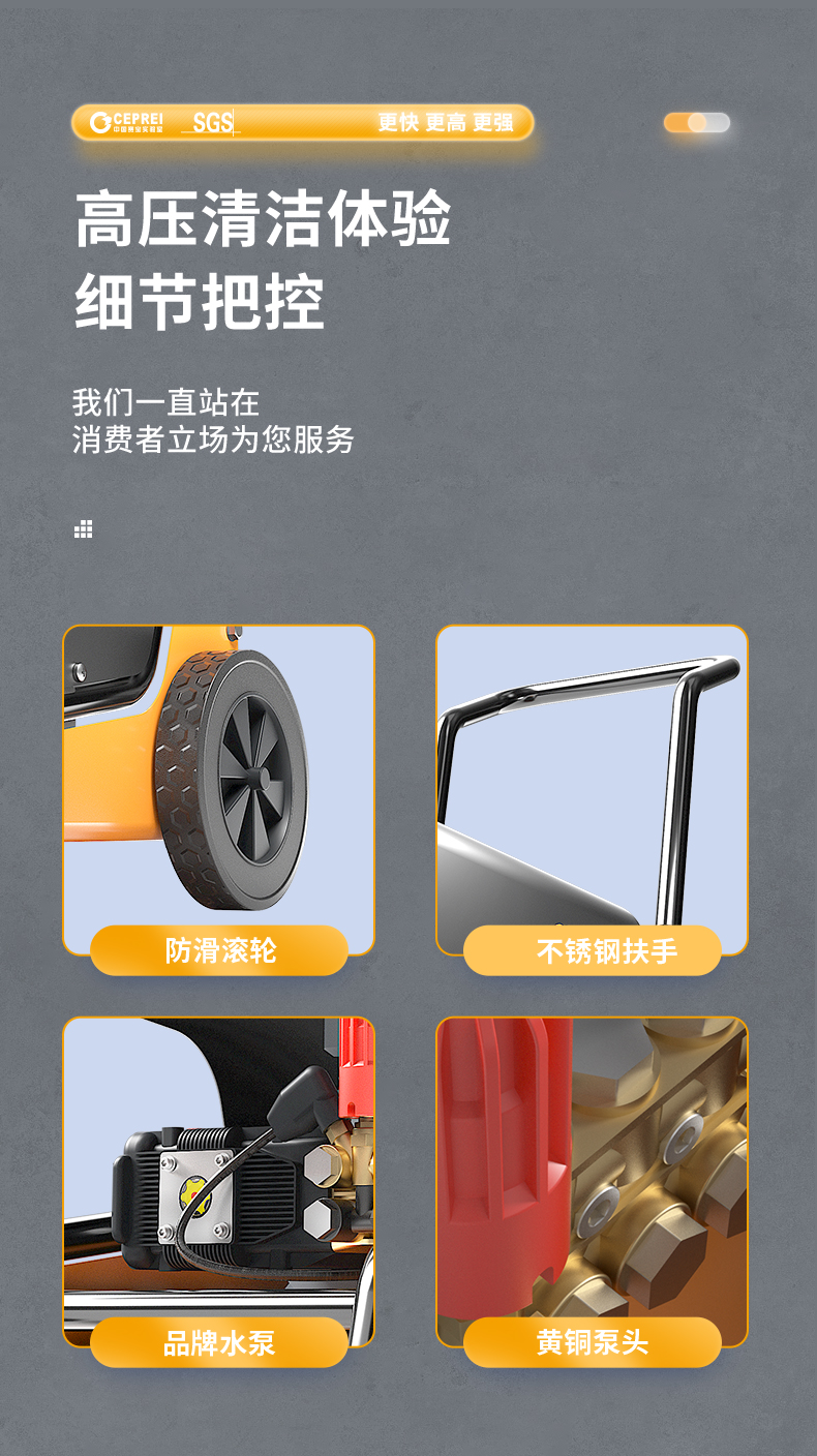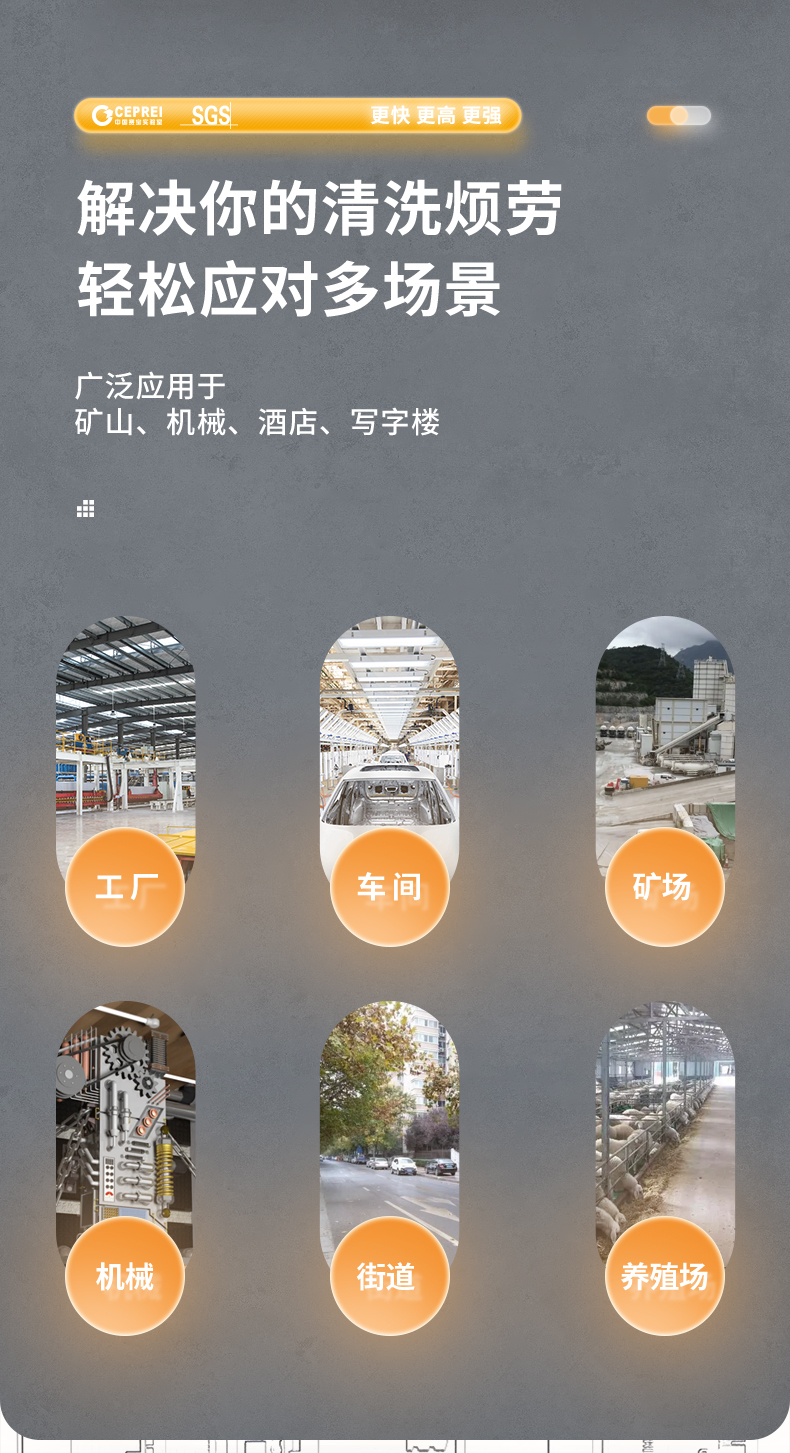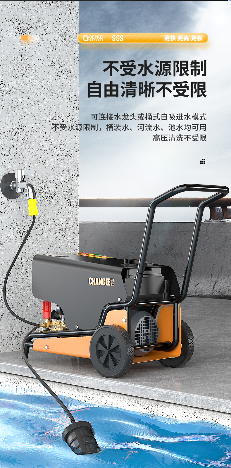 橙犀高壓清洗機 YG1815:工業(yè)清潔,大功率電機清潔高效率,防破裂耐沖擊強,耐腐蝕長效使用,還有智能高溫斷電設計,可視化調節(jié)省時省水。
