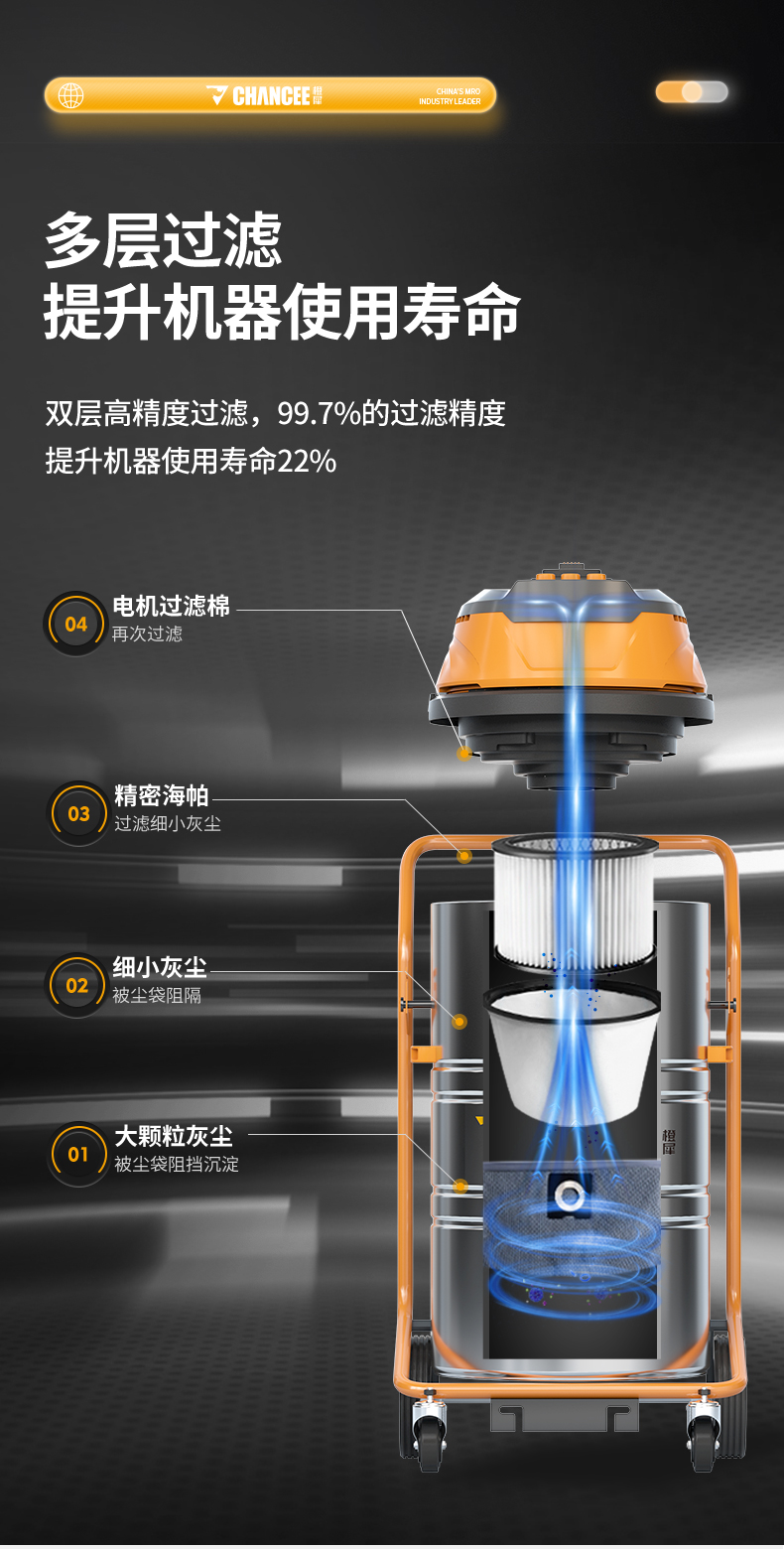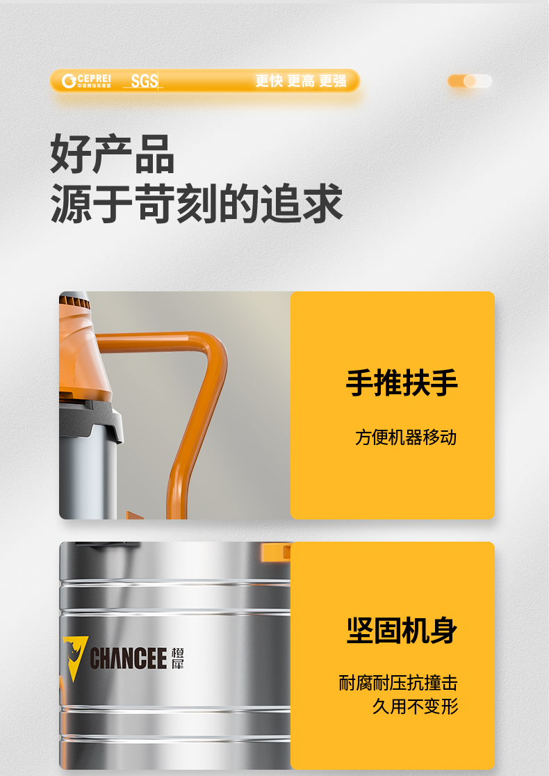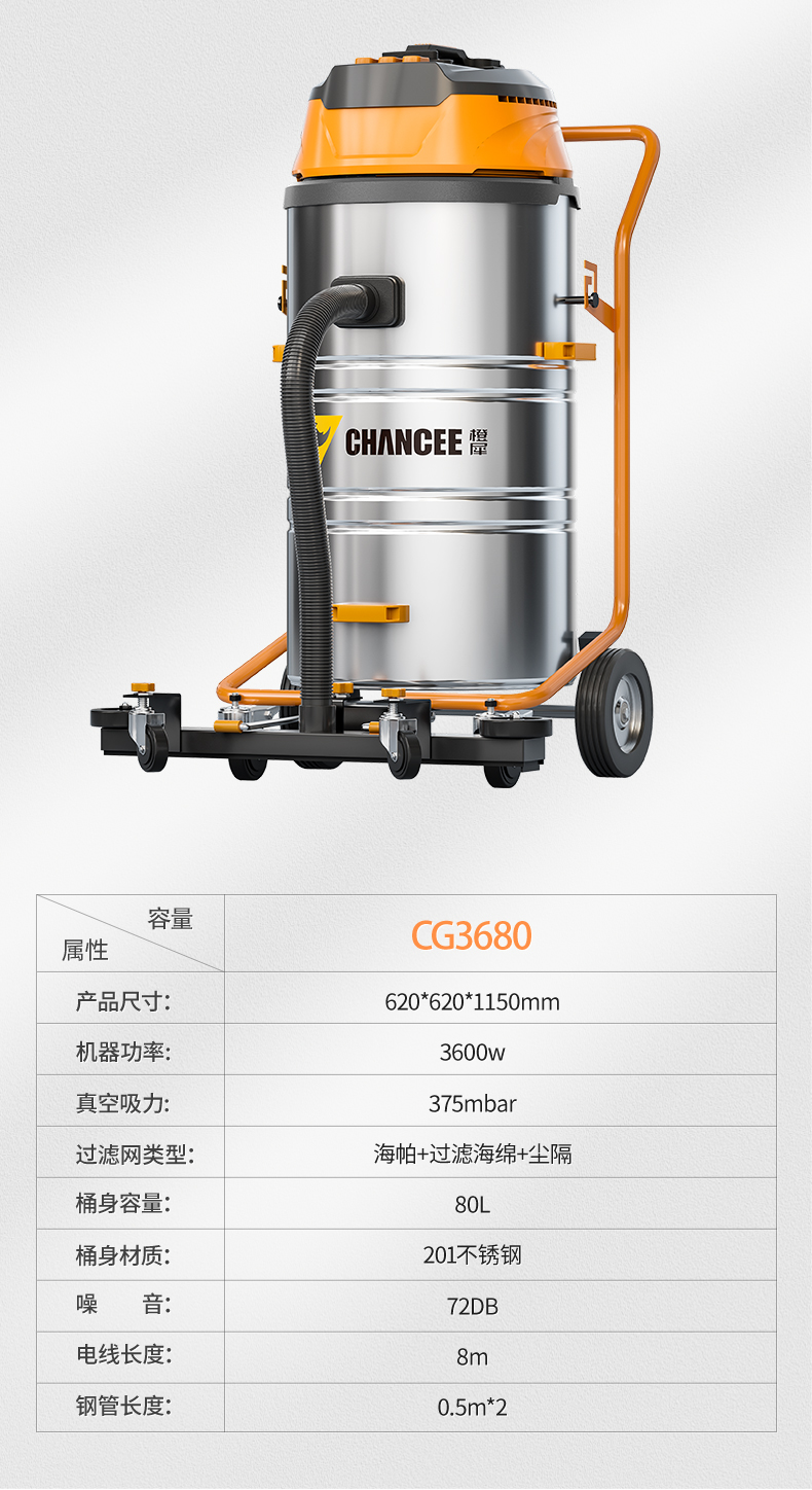 橙犀工業(yè)吸塵器CG-3680:新升級(jí)加強(qiáng)吸力,80L工業(yè)級(jí)大通量告別反復(fù)傾倒,功率可達(dá)到3600w