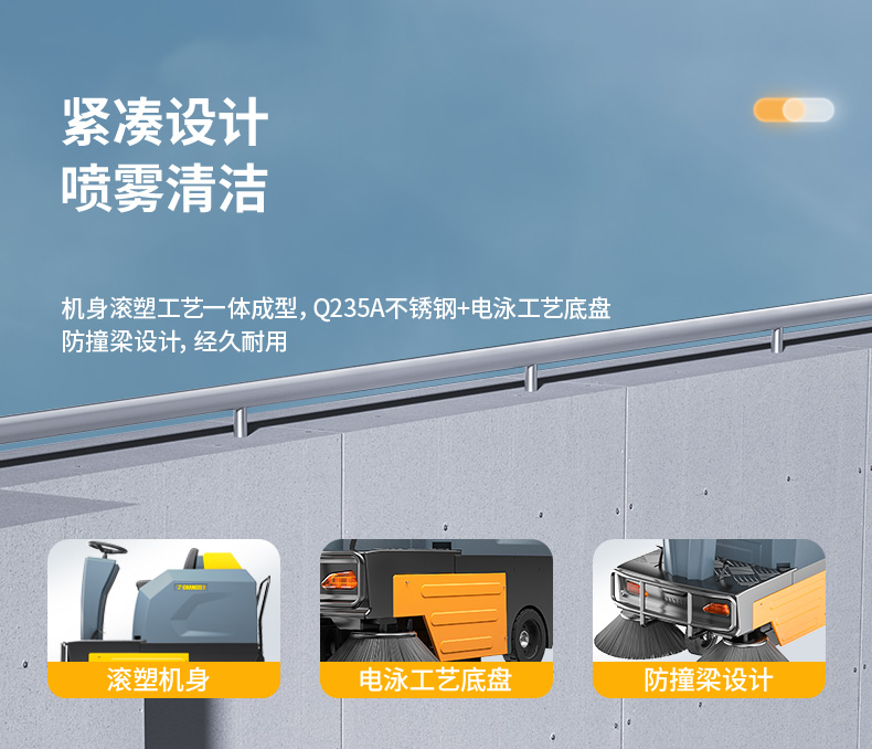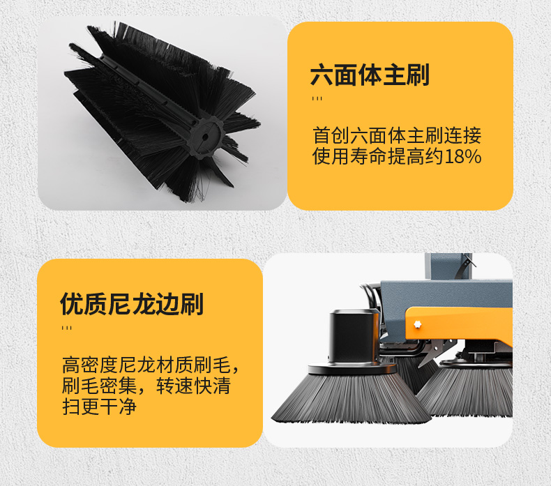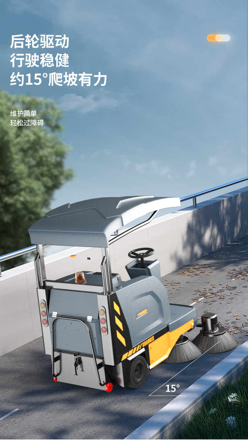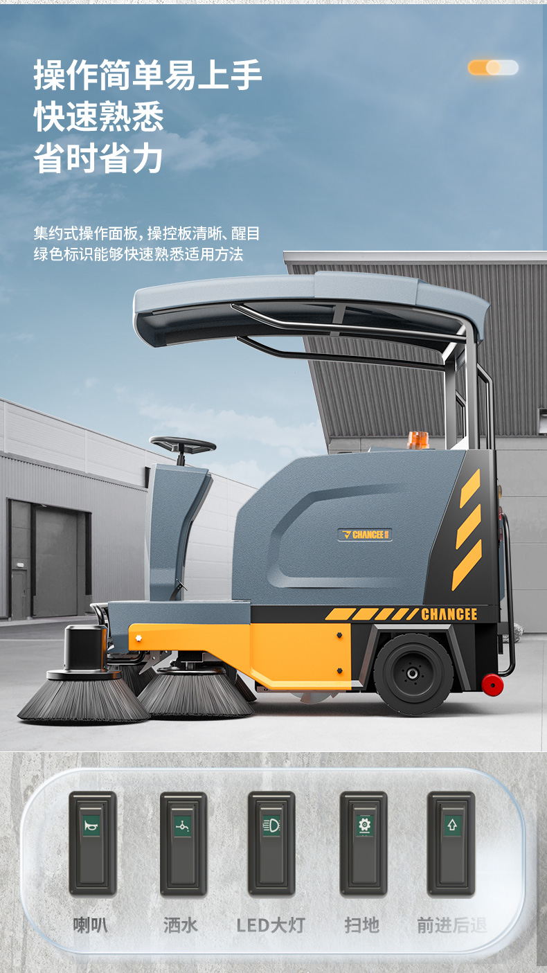 橙犀U190P 駕駛式掃地機:半封閉駕駛式倉,可以遮陽,清潔體驗更佳。高強度氮氣減震系統(tǒng),保護機身安全系數(shù)高,駕駛平穩(wěn)不顛簸,690mm打復(fù)讀主刷,首創(chuàng)六面體鏈接,使用壽命提升18%