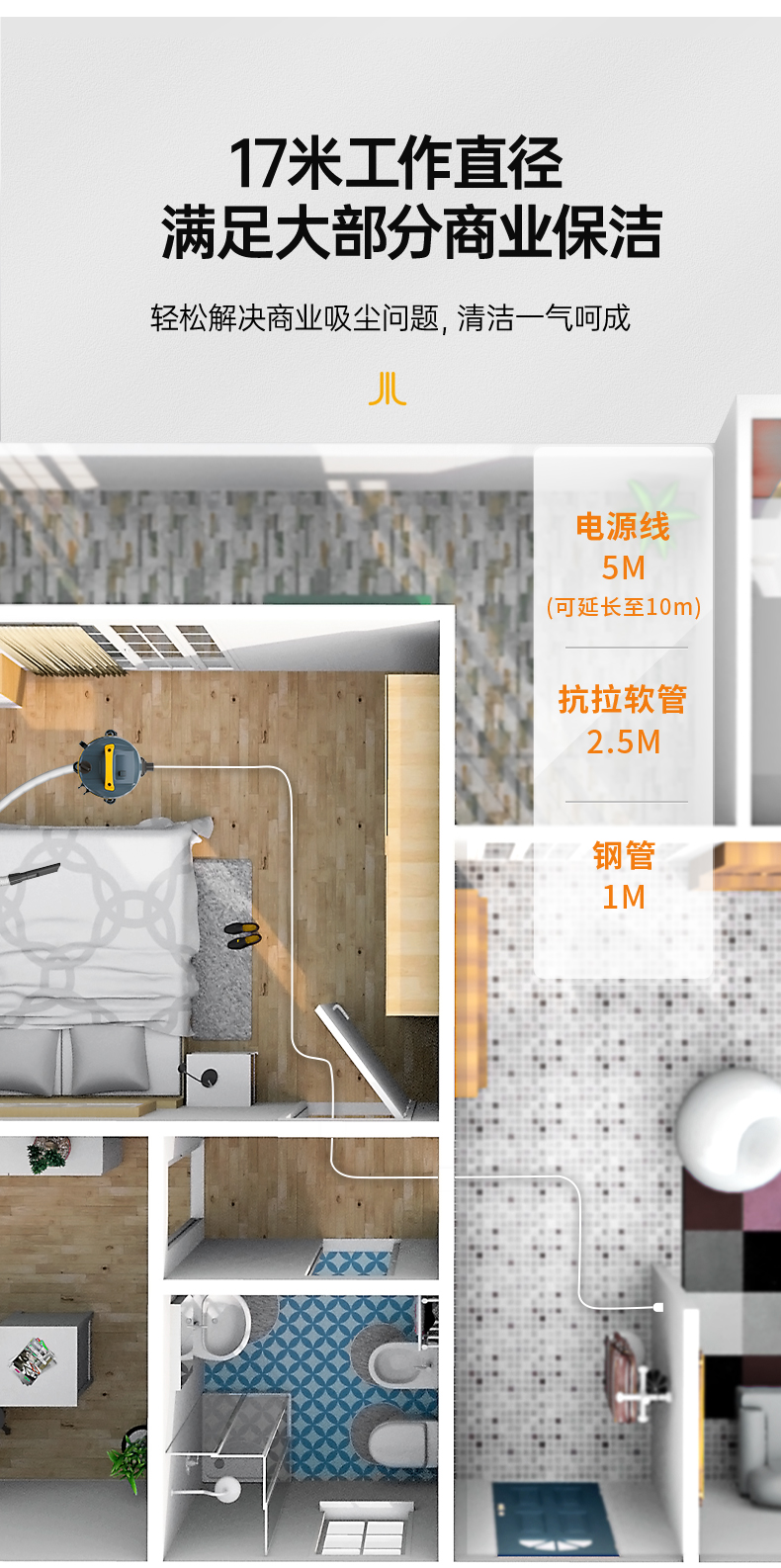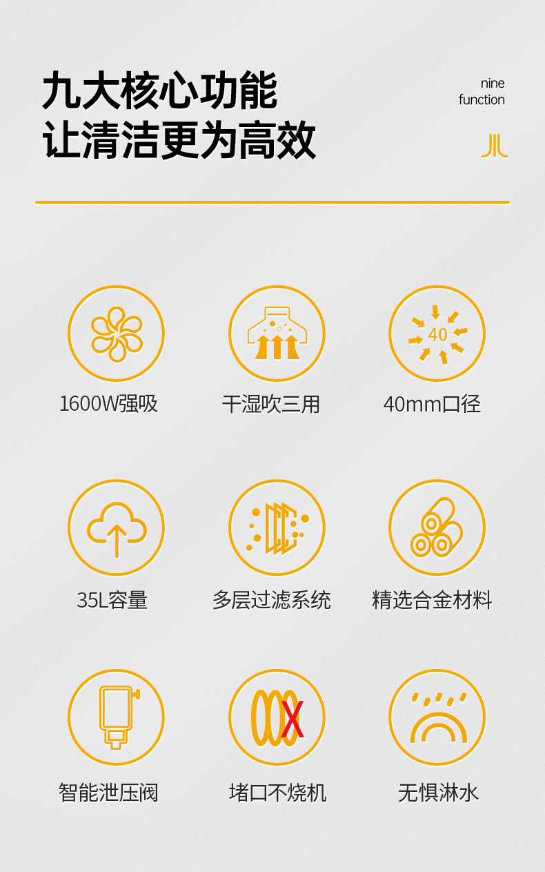 橙犀吸塵器 CRS-1635:升級40mm大口徑進風(fēng)口,吸力更大清潔更快,還搭配了抗扭軟管,即時暴力扭曲也能快速復(fù)原。吸干凈為止,不燒機!